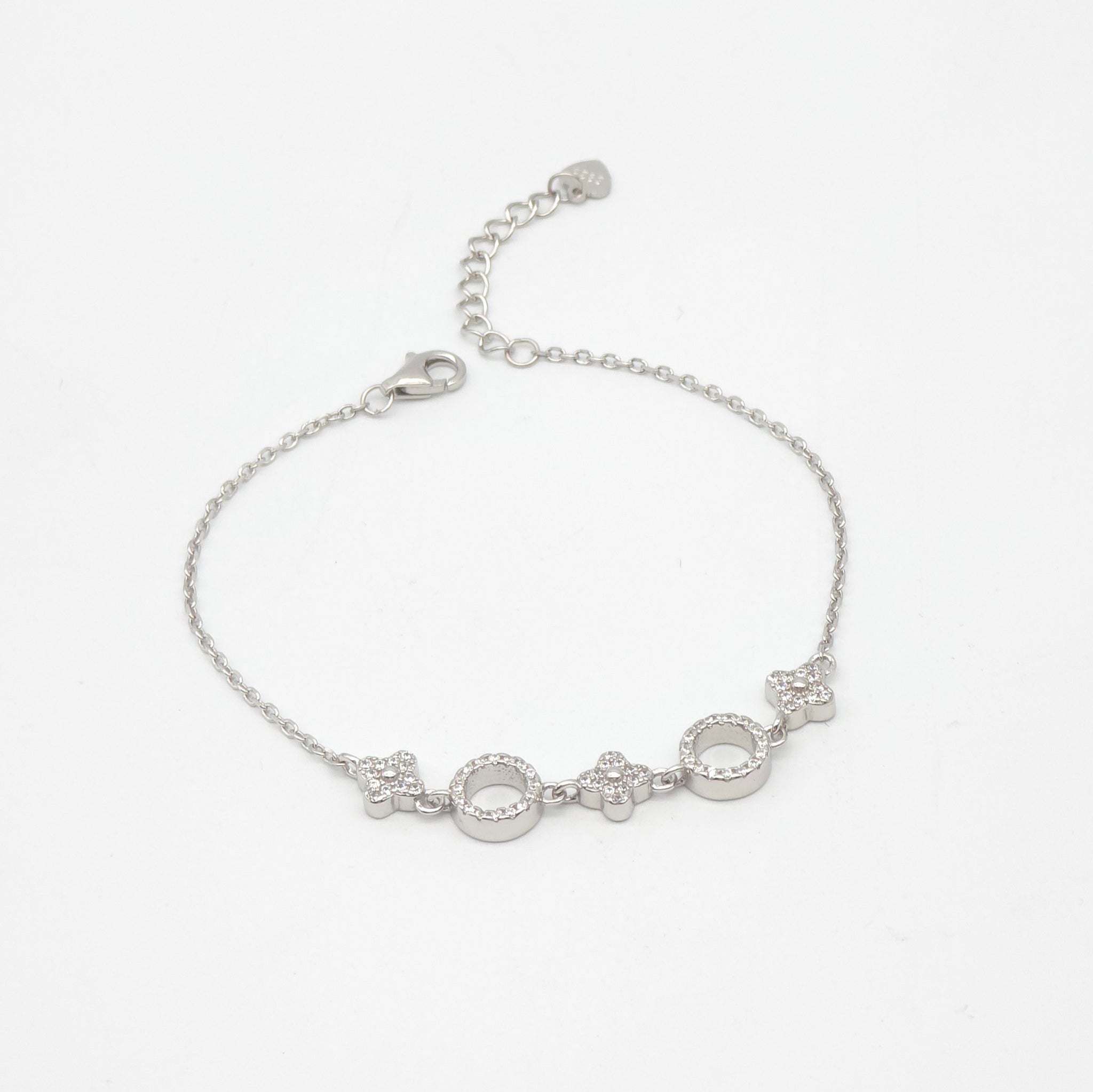 This 16.5cm sterling silver bracelet features delicate floral and circle cubic zirconia links, offering a subtle yet elegant touch to any outfit. Extendable to 3mm, this bracelet provides a comfortable fit and is perfect for all occasions. Enjoy the beauty and sparkle of this Flower Circle Bracelet.