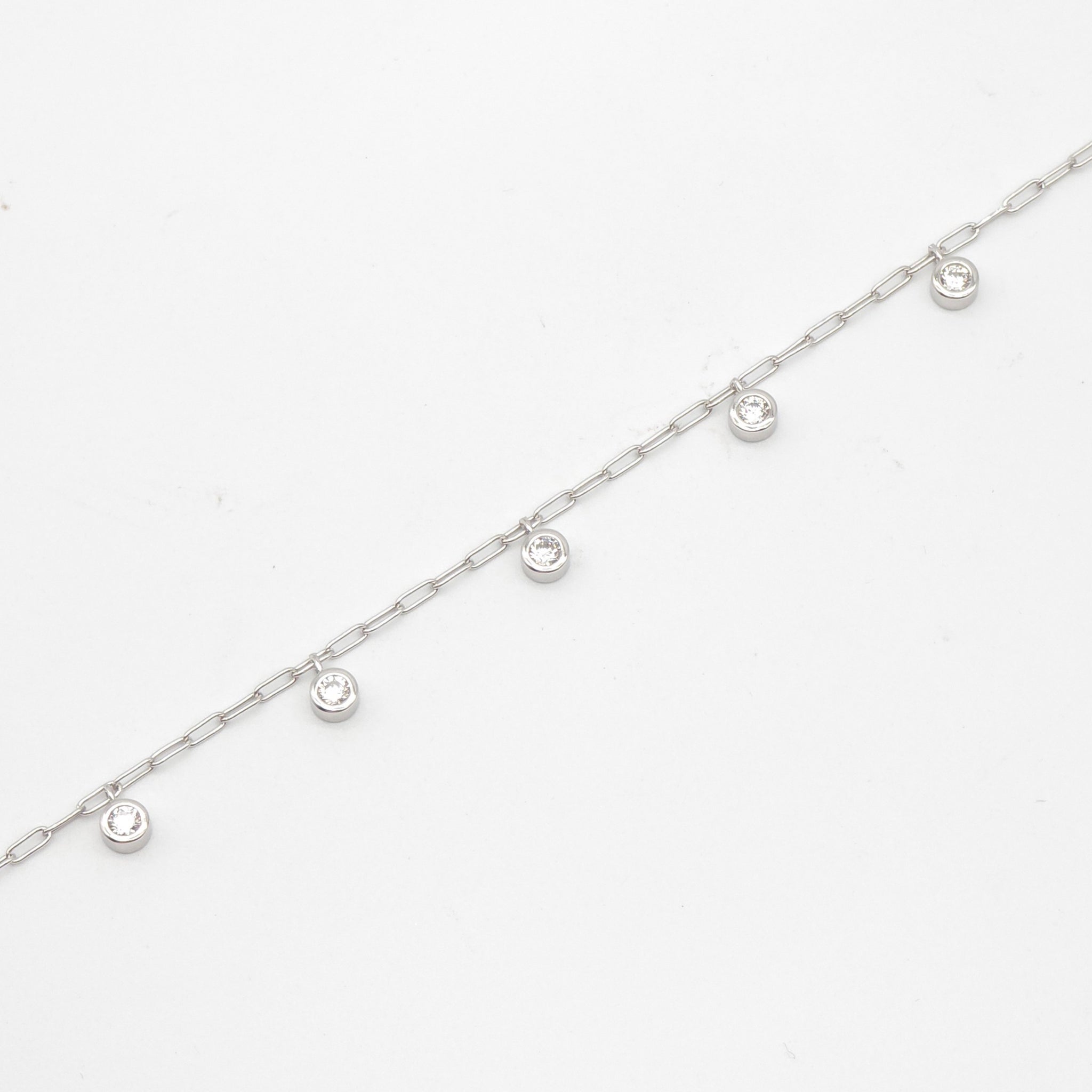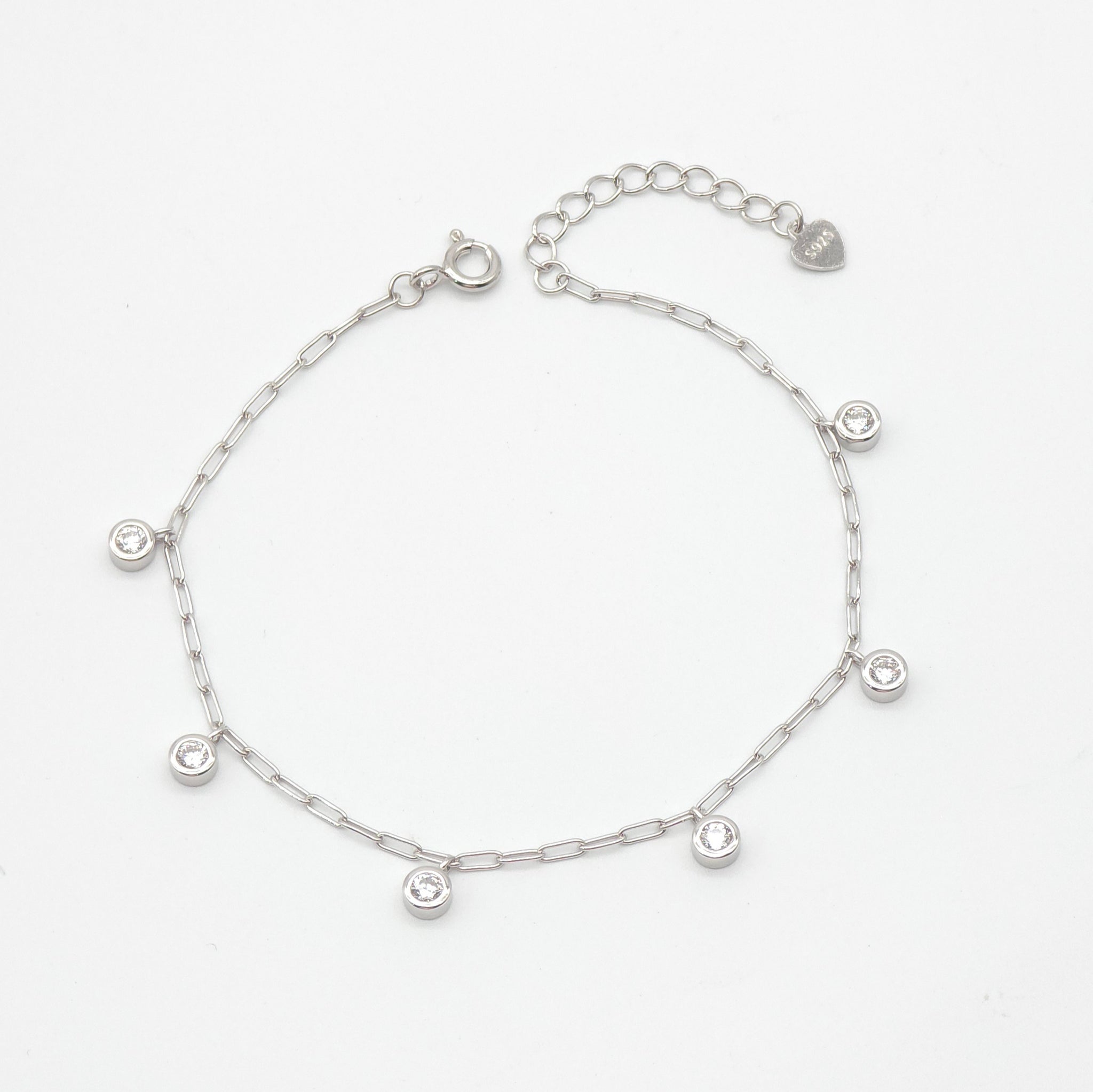 This 16.5cm with 3cm extension bracelet is crafted from high-quality sterling silver and features dazzling cubic zirconia charms that elegantly dangle from the links. Add a touch of sophistication and sparkle to any outfit with this must-have bracelet. Perfect for a night out or special occasion.