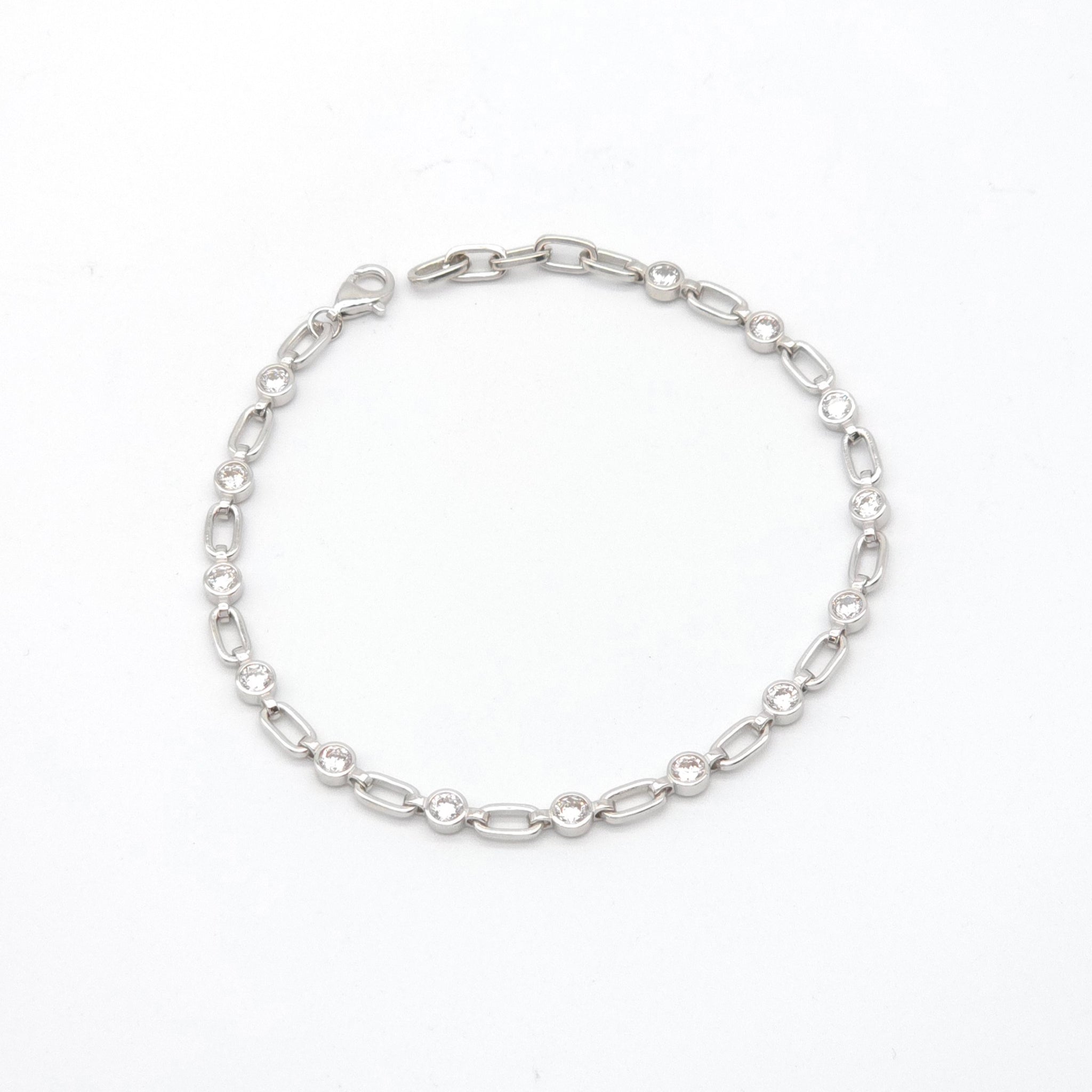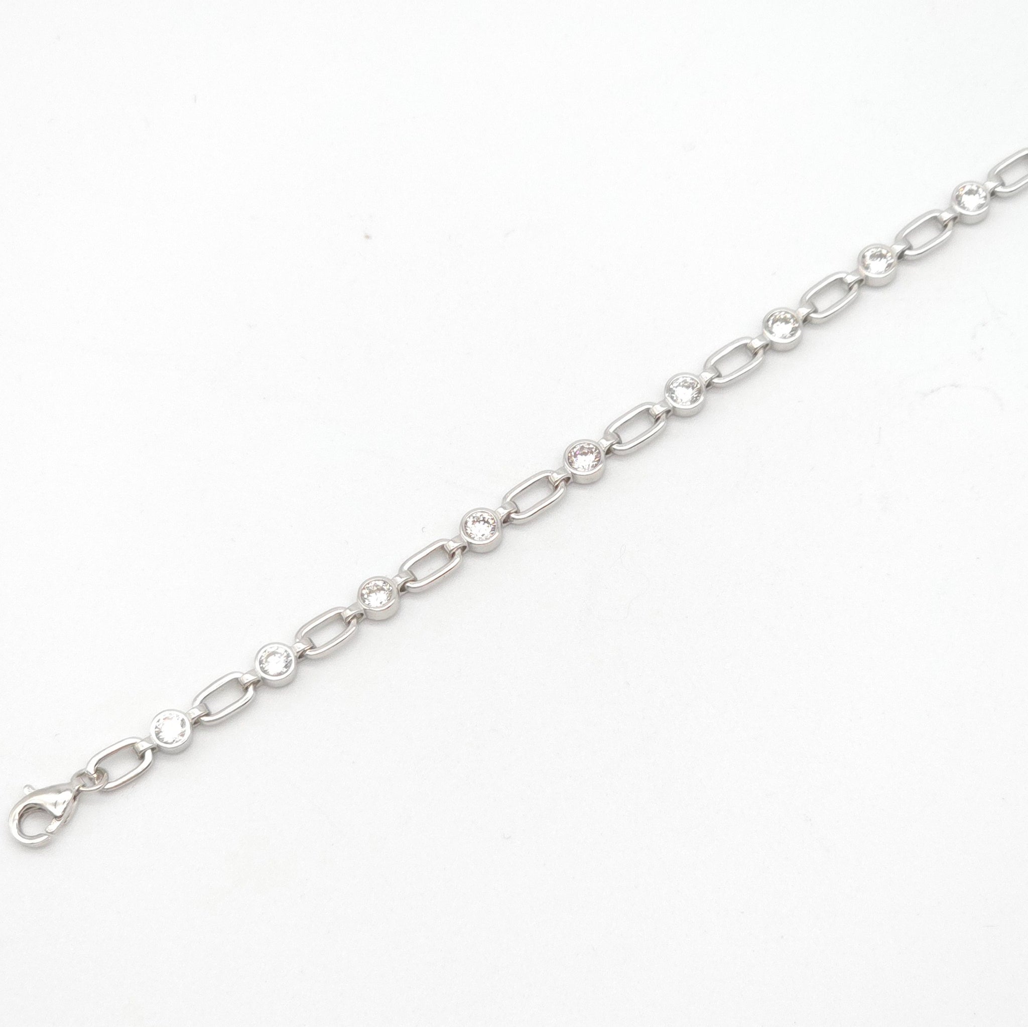 Crafted with elegant sterling silver, this bracelet features a stunning combination of ovals and cubic zirconia. Measuring 19cm, it adds a touch of sophistication to any outfit. Elevate your style with this luxurious accessory.