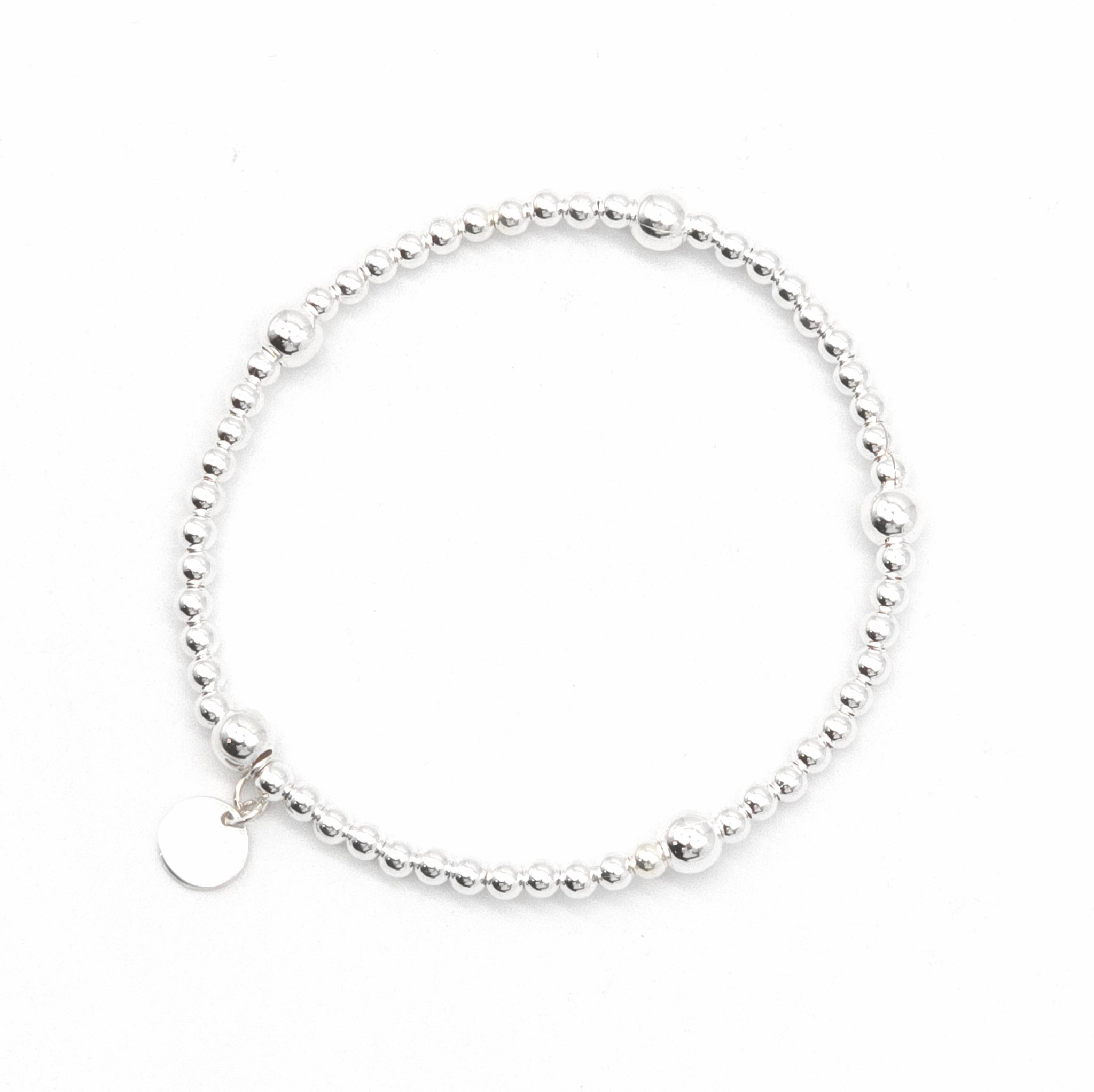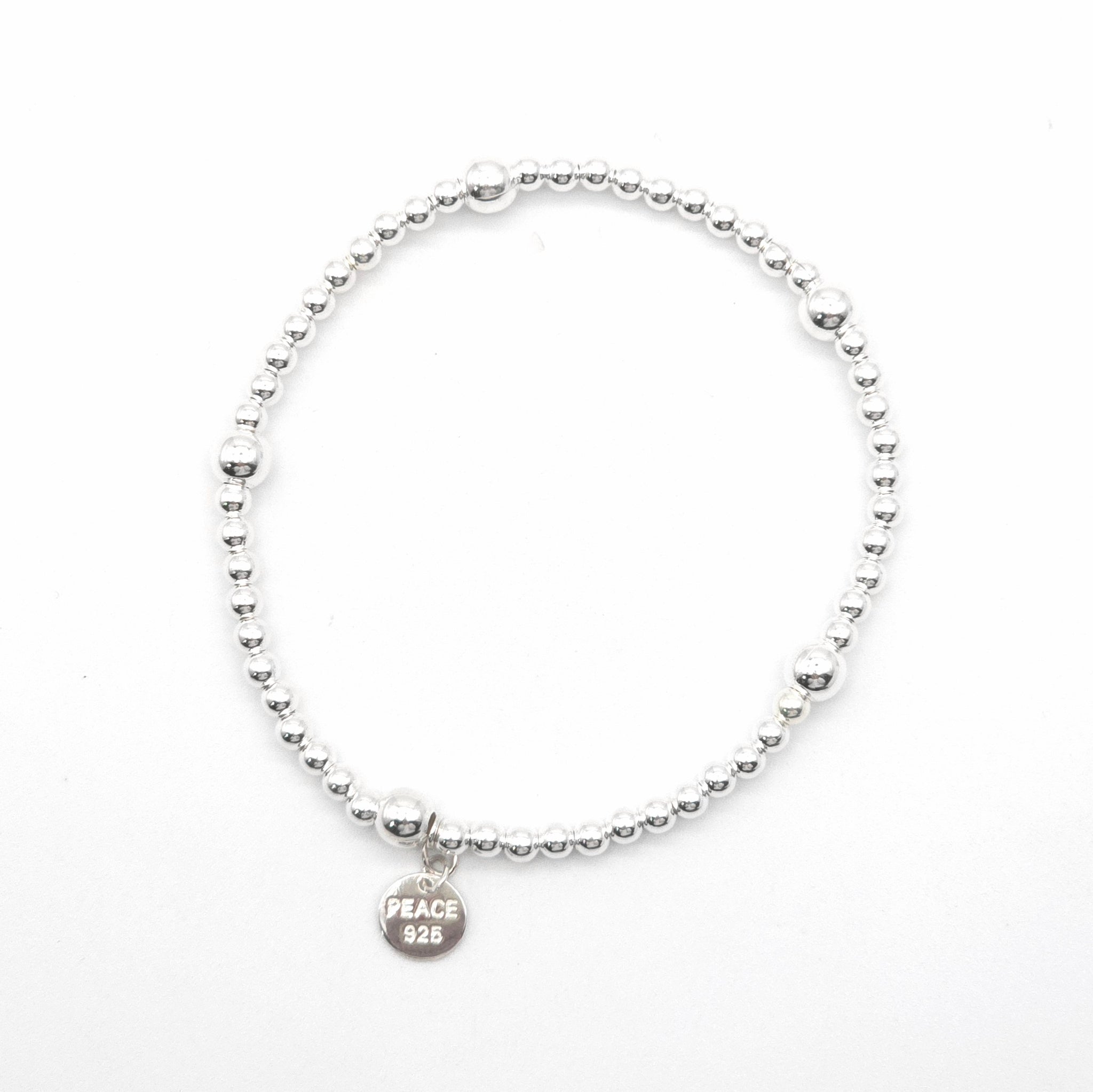 This Sterling silver stretchy 5 ball bracelet is a stylish and versatile accessory. With a 3mm thickness and 5 4mm balls, it adds a touch of elegance to any outfit. The stretchy design ensures a comfortable fit for all wrist sizes. Perfect for everyday wear or special occasions.