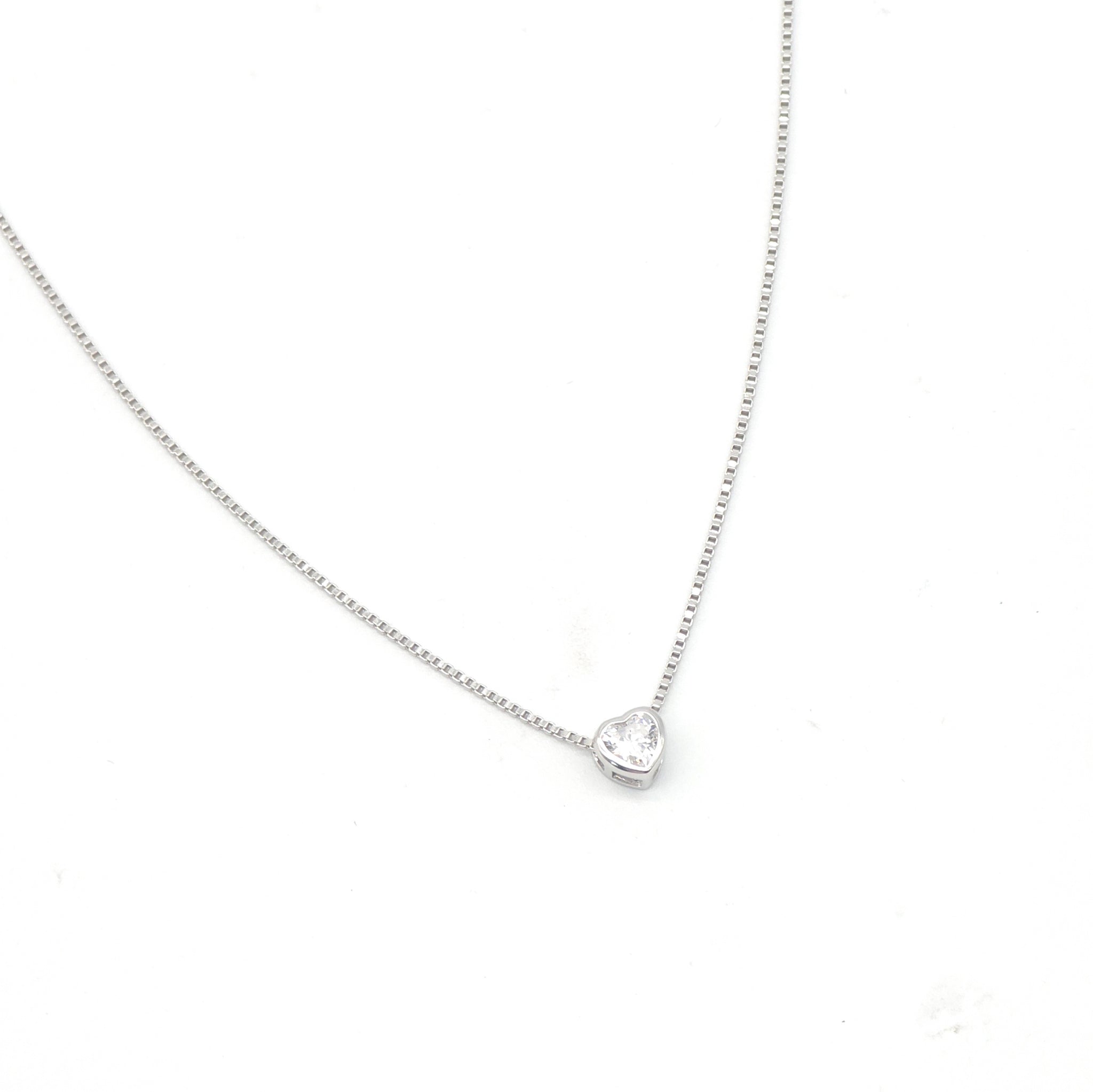 This 43cm sterling silver box chain necklace features a sparkling 5mm cubic zirconia heart pendant and includes a 3cm extension for adjustable length. A perfect gift for anyone who loves elegant and timeless jewelry. Enhance any outfit with this stunning and versatile necklace.